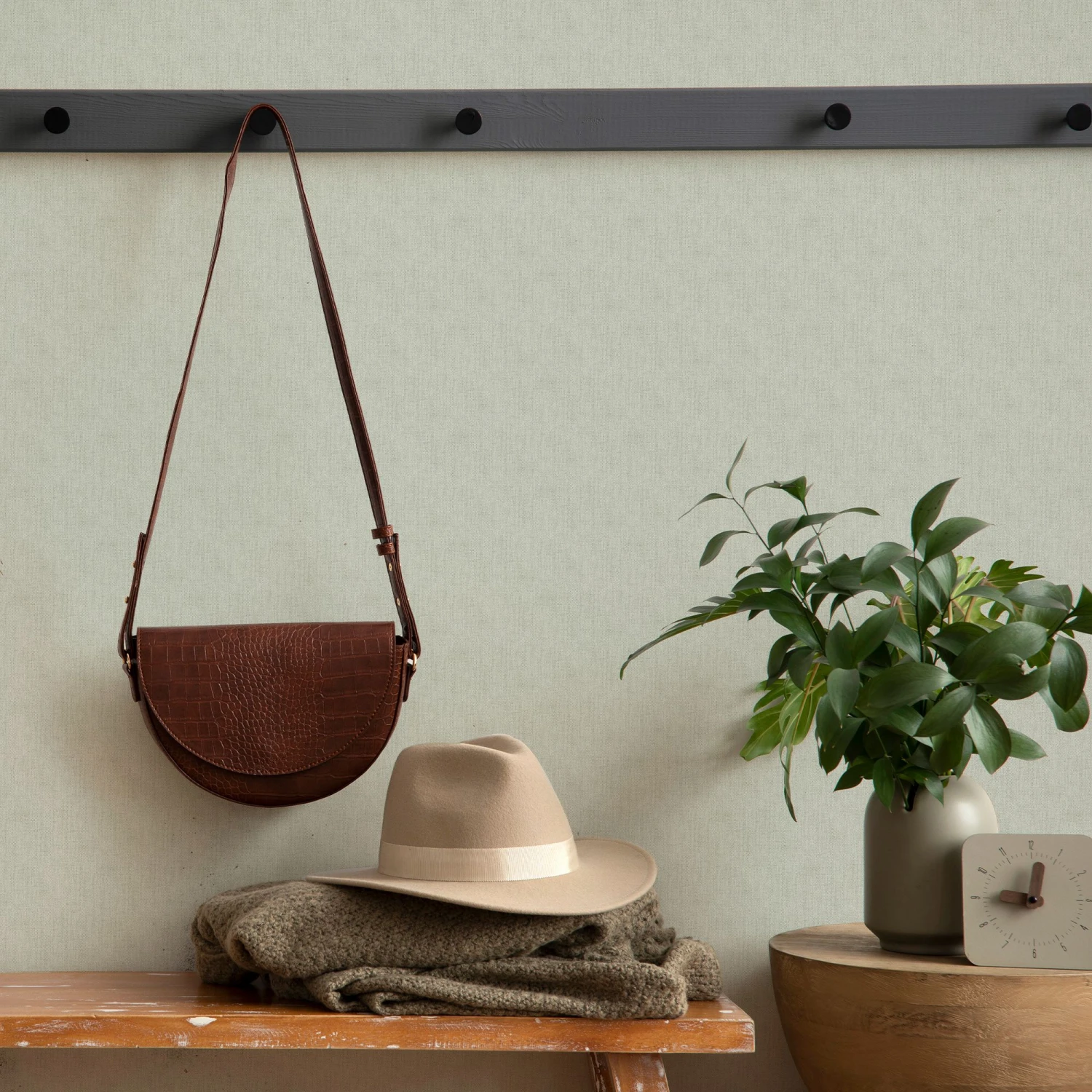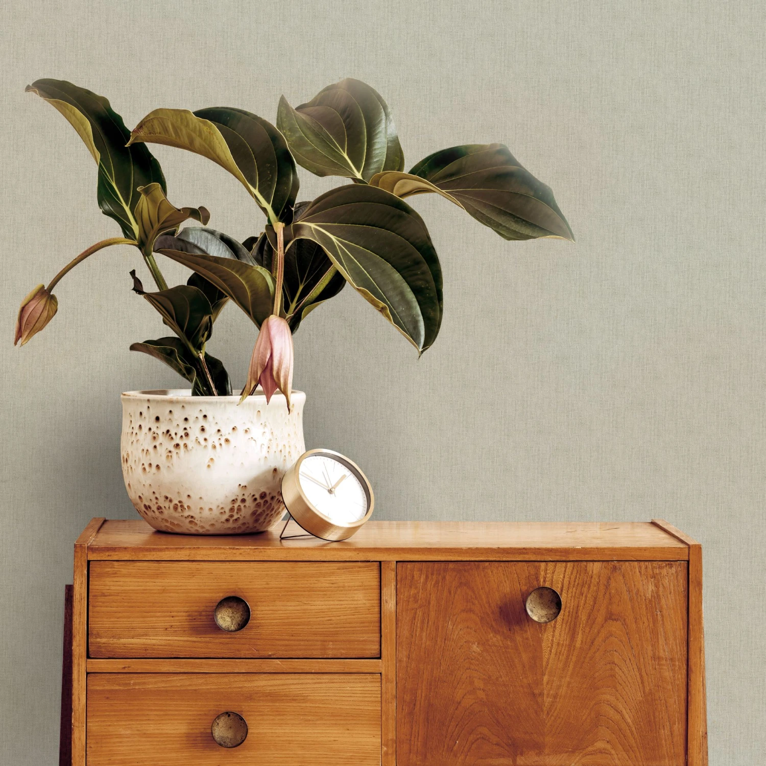 A sophisticated texture to add warmth and cosiness to any room. Linen Shimmer brings the tactility of a tight fabric weave mixed with highlights of metallics resulting in a beautiful shimmer effect in Sage. It will look great for longer, too, thanks to the UV & stain resistant vinyl. Tough, trendy and flexible, this wallpaper is a perfect match for any decor style.